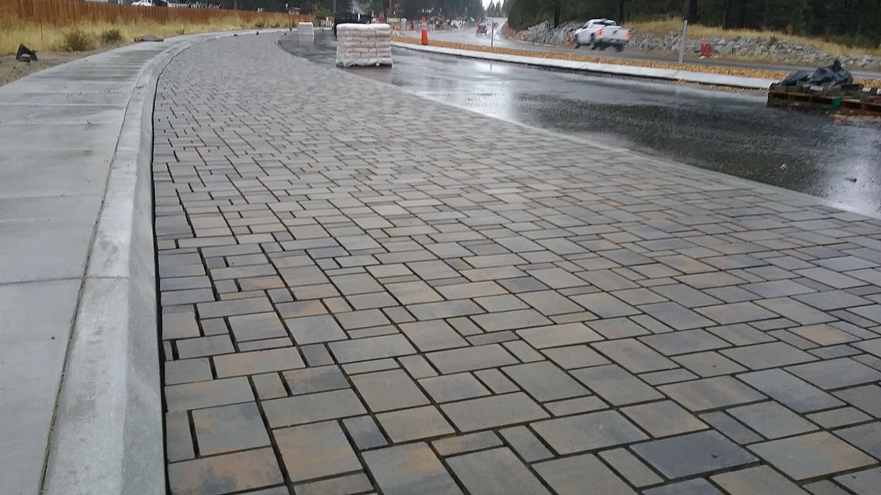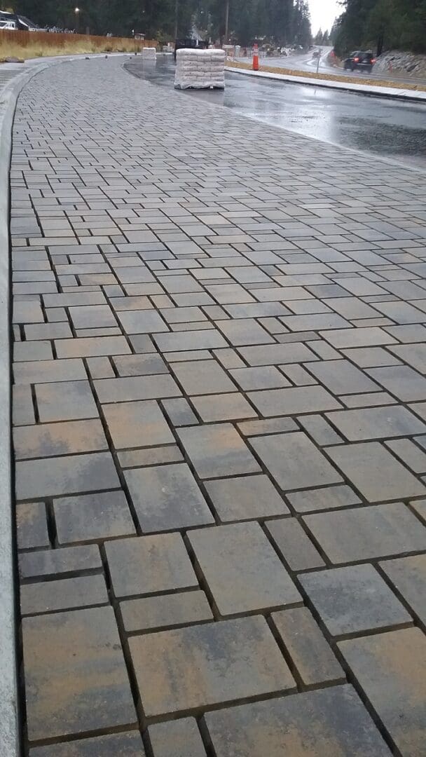 The Belgard 80mm concrete pavers on the surface are built to sustain heavy traffic loads while being permeable in the spaces between the pavers. The stormwater then drains through the gravel filter of the EPIC system to infiltrate through a geofabric into the native soil. Record rain events with excessive volumes drain through the EPIC chambers and discharge clean and filtered water into the Lake Tahoe watershed.